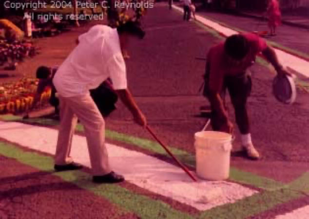 The photo below shows another task group on the opposite side of the world, in Costa Rica. One man paints the white line while the other two paint the green. The activities are instrumental to a shared goal.